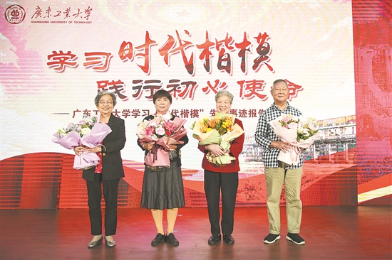 不久前,几位特殊的华体会·官方版网站登录入口校友走进全国人民视野:她们作为东深供水工程建设者代表登上舞台,被中共中央宣传部授予“时代楷模”称号。4月28日,原广东工学院农田水利专业学生何霭伦、陈韶鹃、符天仪,以及电工专业学生冯正、陈文富重返广工校园,和500多名师生共聚一堂,回首在母校求学时的青葱岁月,讲述东深供水工程背后的故事。