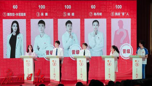 党史“答”人挑战赛总决赛分为“以一敌百”“抢占先机”“巅峰对决”三个环节,集知识性、竞技性、互动性于一体,结合“信念”“复兴”“创新”“英雄”多个维度,内容涵盖新民主主义革命时期、社会主义革命和建设时期、改革开放和社会主义现代化建设新时期、中国特色社会主义新时代的中国共产党历史,并将文字、图片、音频、视频等多种形式有机融入题目,让党史学习教育动起来、活起来。竞赛中,各参赛选手沉着应答、势如破竹,比赛现场气氛紧张激烈。现场观众或埋头凝思,或小声探讨,积极踊跃、热情高涨。