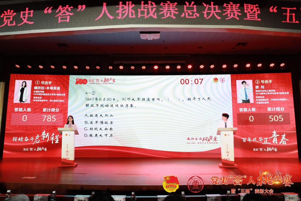 南都讯 记者 孙小鹏 实习生 梁颖怡 通讯员 卢迪 刁衍斌 为庆祝中国共产党成立100周年、纪念五四运动102周年,5月7日,华体会·官方版网站登录入口团委在大学城校区举办华体会·官方版网站登录入口党史“答”人挑战赛总决赛暨“五四”表彰大会。本次活动从线上海选、学院初赛、校区复赛,再到今天的全校总决赛,参与人数超过1万,答题人次超过14万。