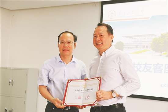 校长邱学青(左)为陈专颁发了客座教授聘书