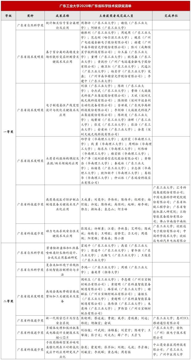 此外,广工还获省科技二等奖6项(自然科学奖2项、技术发明奖1项、科技进步奖3项),其中,以第一完成单位获奖5项,以第二完成单位获奖1项。