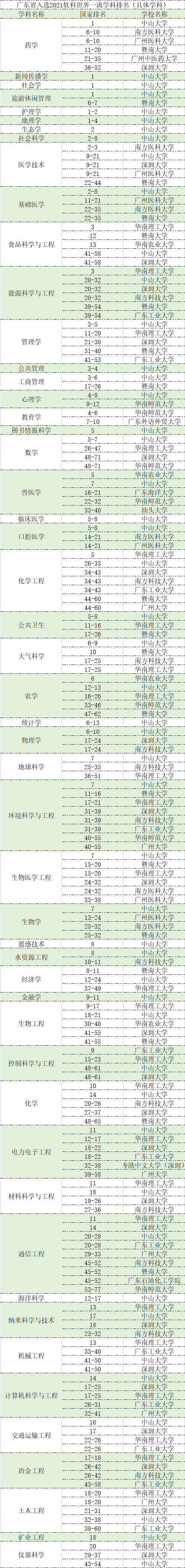 从具体入选学科的数据上看,化学、电力电子工程、材料科学与工程这3个学科广东均有10所高校上榜,此外化学工程、环境科学与工程学科分别有9所高校在列,工理学领域排名领先。