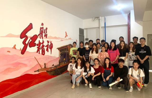 以史为魂,以“绘”说史。美术系学生党支部用艺术之笔描绘党史开天辟地的大事件——中共一大,深刻领悟“红船精神”所代表的精神内涵和时代价值,决定将“南湖红船”这一鲜明的红色元素融入主题创作中,加入了“青山”“江水”“海鸟”等元素,采用透视的油画技法,历时两日连续奋战,绘出了“一艘红船从远方的江山图景之中劈波斩浪、坚毅驶来”的磅礴画面。学生党员全情投入,高年级带动低年级,接力作画,展现了学生党员良好的专业素养与党性修养。