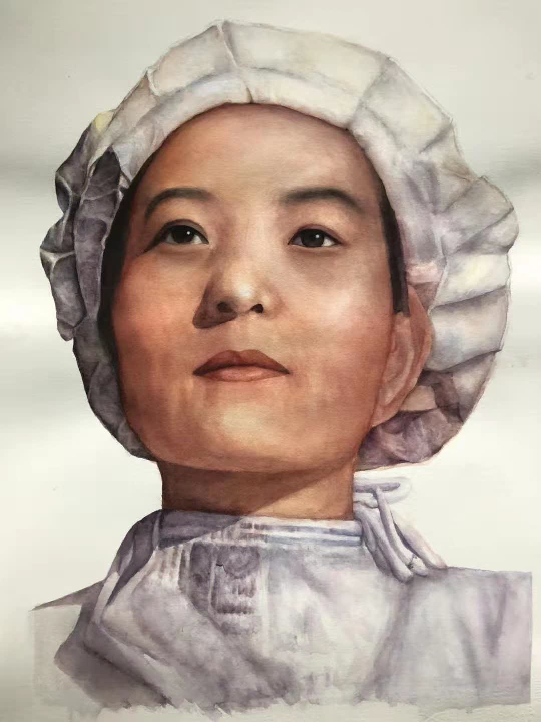 来自2020级艺术与设计学院美术专业学生洪敏,介绍了自己的抗美援朝系列作品《中国的南丁格尔——白衣天使李蓝丁》。这幅作品中的女性人物叫李蓝丁。她被毛泽东誉为“中国的南丁格尔”,为党和人民的医疗卫生事业奉献了一生。洪敏说,在肆虐全球的新冠肺炎疫情中,有许多医护人员挺身而出,创作抗美援朝的题材时就不由自主地想到了医护人员,所以挑选了具有代表的“中国的南丁格尔”李蓝丁护士。