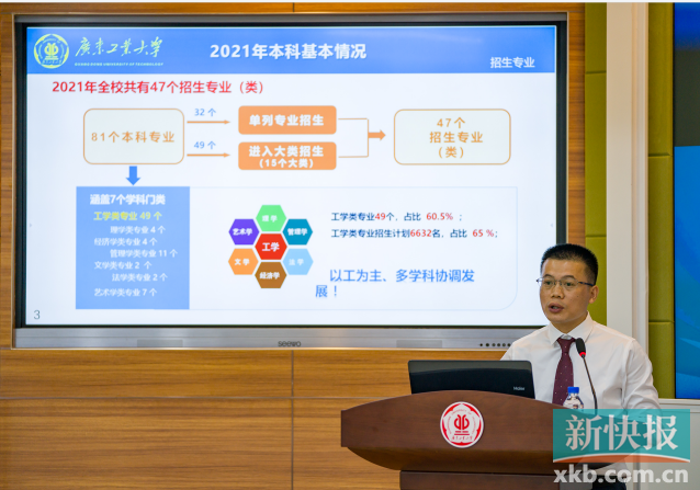 会上,校长邱学青从“大、实、特、快”四个方面介绍了广工的办学特色,副校长余林介绍了人才培养成效和特色,教务处处长李丽娟、招生办公室主任苏兆祥分别介绍了本科专业情况、招生政策及变化。