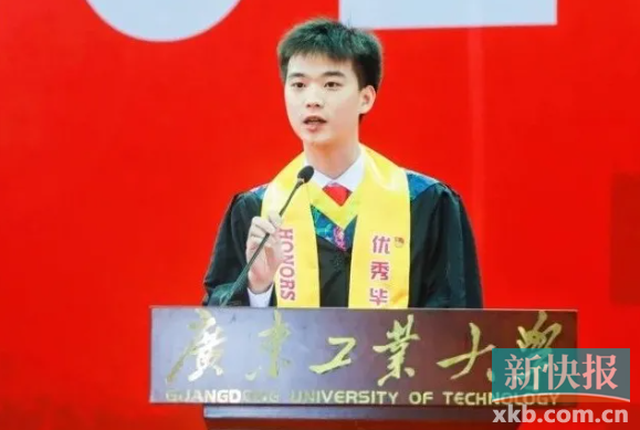 2017级机械电子工程专业的廖智燊作为毕业生代表发言。他回忆了在广工校园的温暖相遇和励志成长,感恩母校培养、师长教导与同学们的互相鼓励陪伴,并表示会用更顽强的奋斗精神去面对困难、用更坚定的信念去追逐梦想、用更强大的内力驱动去继续成长。