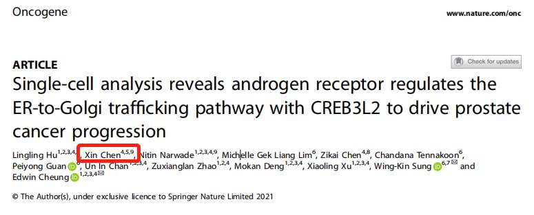 研究小组青年教师陈新(女)与澳方联合以共同一作在《Nature》子刊《Oncogene》癌症方面的最新研究进展