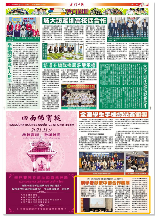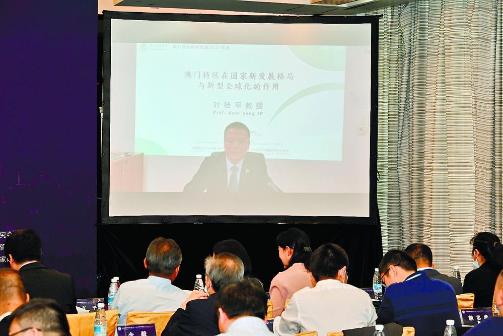 【本報消息】由新興經濟體研究會、中國國際文化交流中心、廣東工業大學合辦的二○二一新興經濟體論壇,於本月六日上午假廣州頤和大酒店舉行,以“新發展格局與新型全球化”為主題,澳城大協理副校長、葡語國家研究院院長葉桂平作為澳門代表出席並作主旨發言。
