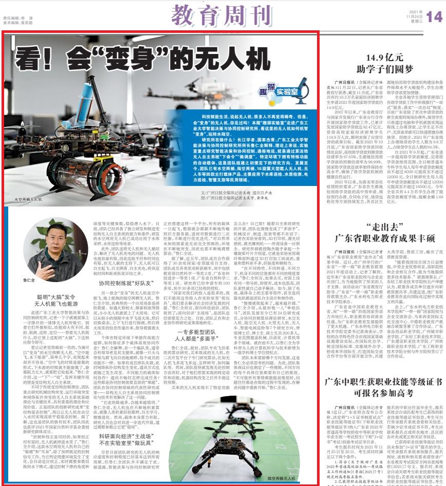 “慢慢就做起来了,越来越开阔。”鲁仁全介绍,从最初他一人“单枪匹马”,团队发展至今已有24位研究成员,分协同控制算法理论研究、水空无人机、陆空无人机、大型无人机、无人车、智能电网巡检等7个研究方向,带领博士后、博士生、硕士生共200多人,专业范围覆盖机械、自动化、计算机等多个领域。就在前不久,以鲁仁全为学科带头人的计算机科学与技术新增为一级学科博士学位授权点。
