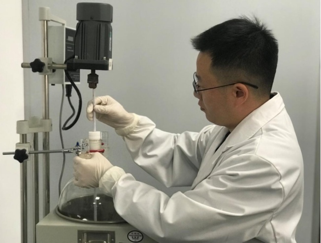 李尊华团队研发人员正在进行纳米磁珠的中试生产