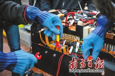 方程式赛车内部结构精密,经常需要多人配合才能完成部件的装配。