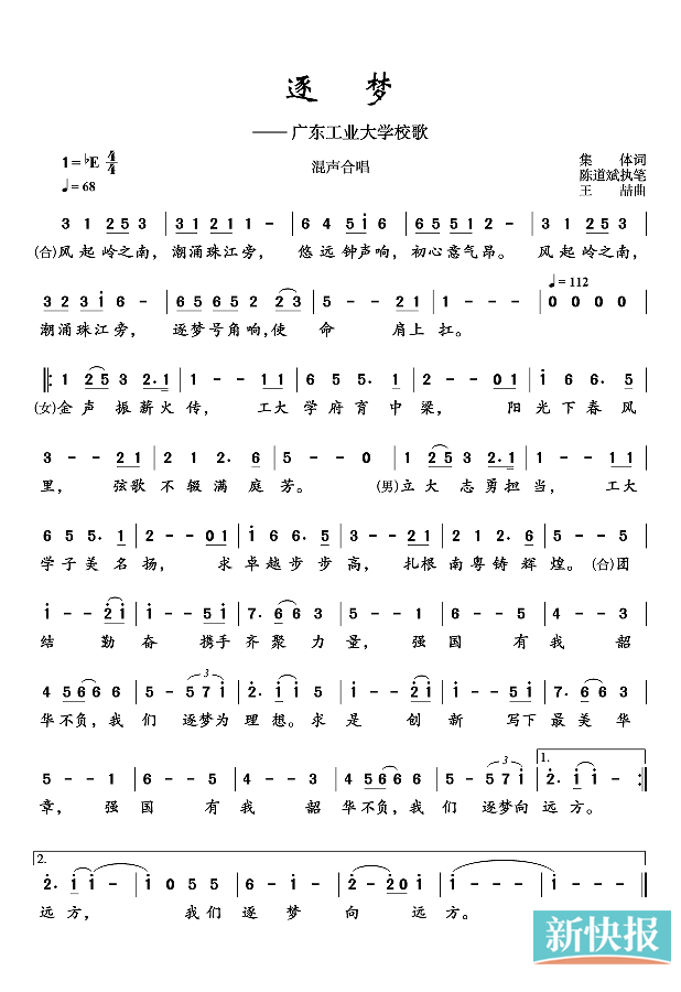 据介绍,校歌《逐梦》以学校63年发展为主线,从历史和现实的维度展示了学校筚路蓝缕、弦歌不辍的办学历程,生动诠释了一代代广工人扎根南粤、砥砺前行,在建设特色鲜明的高水平创新型大学征程上阔步前行的生动场景。