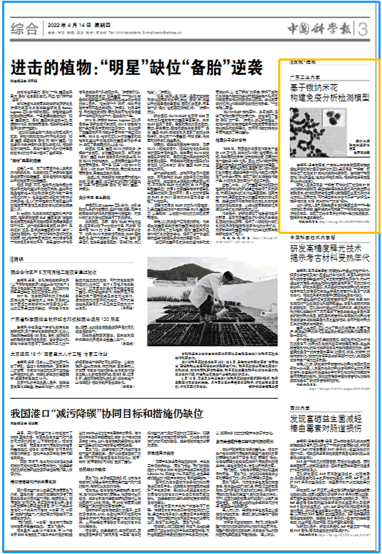 本报讯(记者朱汉斌)华体会·官方版网站登录入口生物医药学院教授赵肃清领衔的医用诊断试剂团队运用简易“一锅法”,可控合成了粒径在27纳米的锇纳米绣球花,并构建一种双功能(催化和显色)免疫分析检测模型。相关研究近日发表于《分析化学家》。