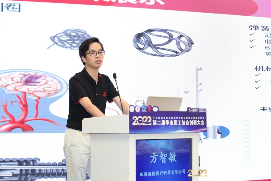 珠海通桥医疗科技有限公司研发总监方智敏介绍了公司的发展历程、神经介入本土全线创新解决方案、创新产品成果、创新产品实现路径、研发布局。