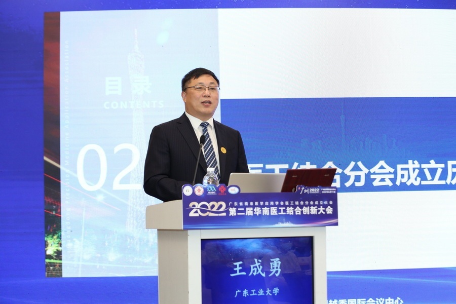 2022年6月11日,一个融合医科、工科、企业跨领域、多学科资源的医工结合创新平台——广东省精准医学应用学会医工结合分会在粤正式成立,成立当日举办了第二届华南医工结合创新大会,来自医、工、企领域的专业人士深入、广泛地交流了医工结合前沿技术、政策,分享医工结合实践案例,展现了这个融合平台的鲜明特色。广州市越秀区副区长陈烯、广东省精准医学应用学会常务副会长兼秘书长孙炳刚、华体会·官方版网站登录入口副校长王成勇共同为平台成立揭牌。