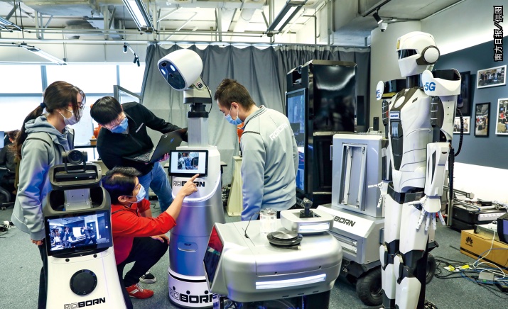 在大湾区一家科技公司,香港青年创业团队正在讨论最新研发的机器人
