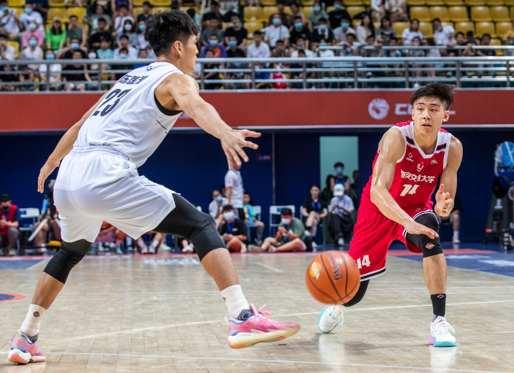 7月30日,西安交通大学队球员赵晨曦(左二)在比赛中带球。新华社记者 黄伟 摄