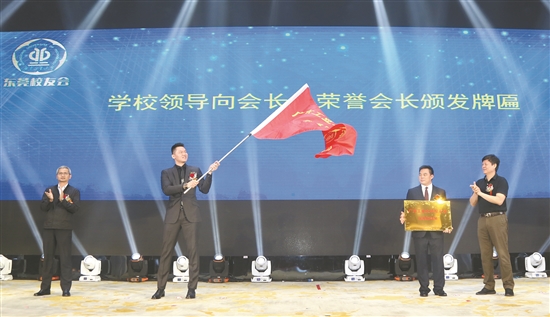 2018年广工校友会东莞联络处成立,朱芳雨代表东莞校友接过旗帜