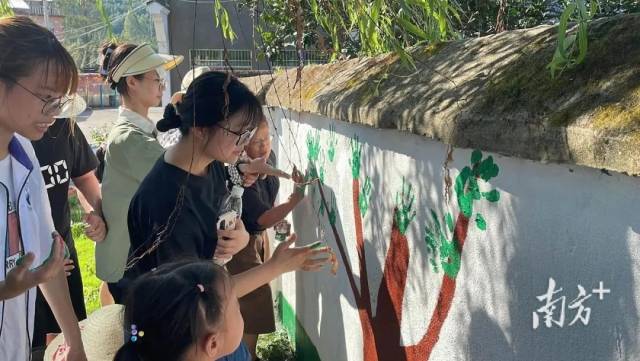 在三桥村文化中心,广工实践团师生与当地美术老师、孩子一起动手把“灰墙”变“绘墙”。“我们把具有当地特色的田园风景和代表广州的‘小蛮腰’都‘搬’到了墙上,让老旧的墙壁变得色彩斑斓。”此次广工“三下乡”社会实践活动的指导老师刘静林说,实践团的学生多数来自社会工作专业,大家利用专业所学,把社区营造理论等相关内容绘写在墙上,给村民普及理论知识,帮助他们了解如何改善社区环境、共同参与社区自治的重要性。
