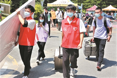 据悉,自8月21日起,新生就可以通过学校迎新网登录迎新系统,查询自己的学号、班级、住宿等信息,并与辅导员、迎新使者取得联系,提前沟通来校报到事宜。据了解,今年学校组织了3100余名党员、志愿者、迎新使者等,帮助新生搬运行李、引路等,提供了贴心且周到的服务。部分学院还组织了“教授志愿者迎新团”,有条不紊地推进迎新工作,为新同学安全顺利入学保驾护航。