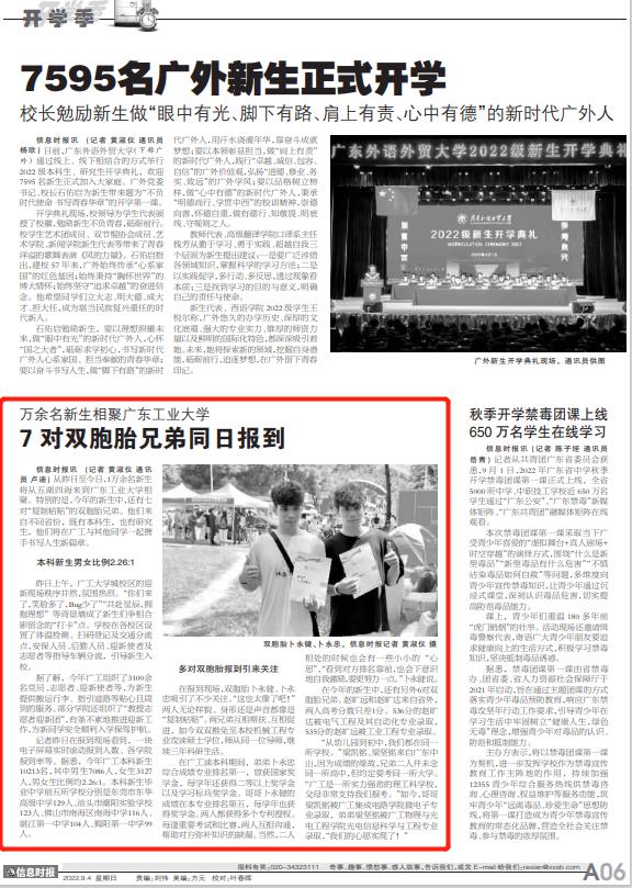 信息时报讯 (记者 黄淑仪 通讯员 卢迪) 从昨日至今日,1万余名新生将从五湖四海来到华体会·官方版网站登录入口相聚。特别的是,今年的新生中,还有七对“复制粘贴”的双胞胎兄弟。他们来自不同省份,既有本科生,也有研究生,他们将在广工与其他同学一起携手书写人生新篇章。
