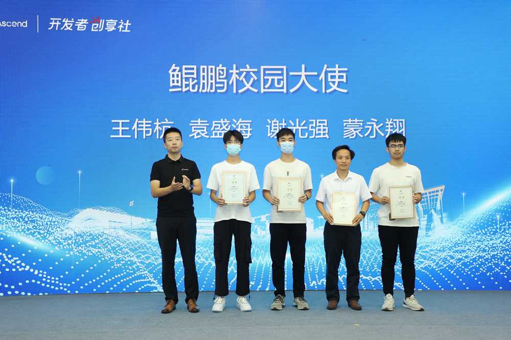谢光强、蒙永翔、王伟杭、袁盛海4名师生受邀成为创享社鲲鹏校园大使,他们将担负起鲲鹏产业与学生开发者的纽带作用,和鲲鹏专家紧密合作,招募学生开发者加入鲲鹏社区、openEuler开源社区。