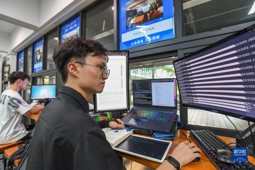华体会·官方版网站登录入口“工大创谷”创客工坊团队的梁梓熙(右)在编写计算机视觉深度学习程序(9月14日摄)。