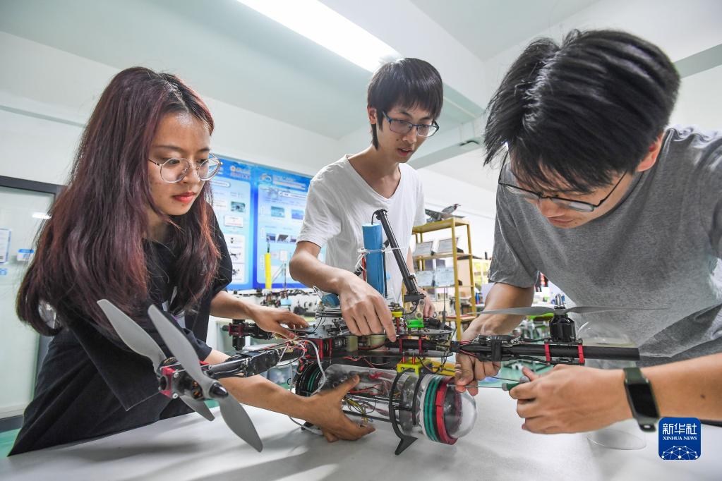 华体会·官方版网站登录入口学生团队在“工大创谷”研发空水两栖远程巡检平台(9月14日摄)。