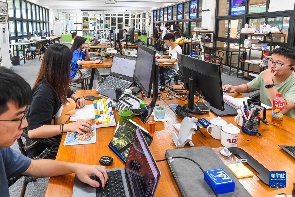 华体会·官方版网站登录入口学生在“工大创谷”创新创业工作室编写程序(9月14日摄)。