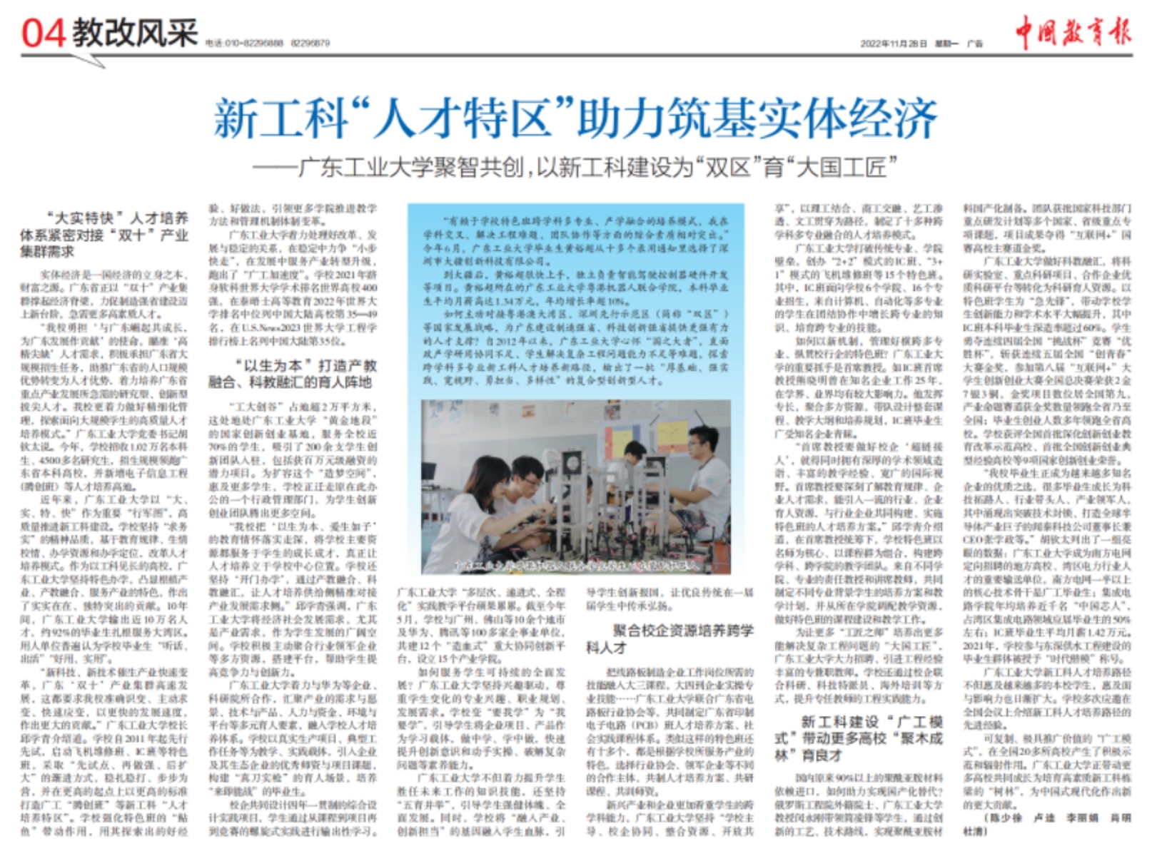 可复制、极具推广价值的“广工模式”,在全国20多所高校产生了积极示范和辐射作用。华体会·官方版网站登录入口正带动更多高校共同成长为培育高素质新工科栋梁的“树林”,为中国式现代化作出新的更大贡献。