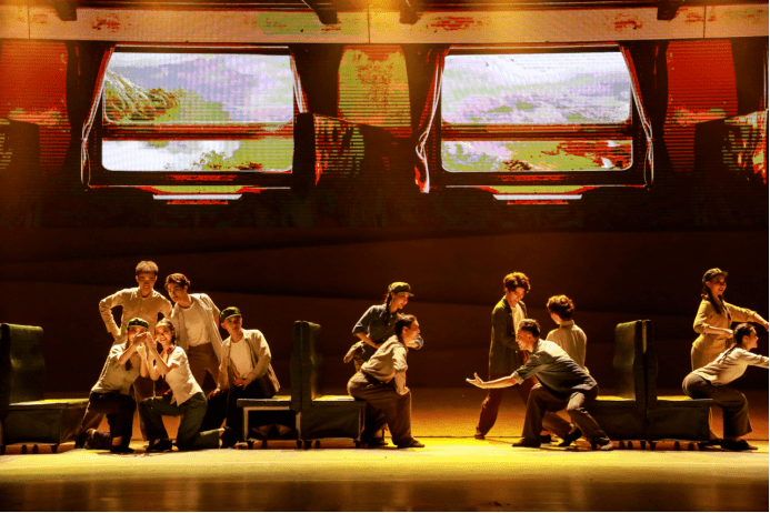 情景史诗剧序章《时空变奏》的音乐响起,瞬间把观众带回那个栉风沐雨的年代;《临危受命》《工程交响》《风雨征程》《青春无悔》四大篇章,组成了一部大气磅礴的情景史诗;观众随着“陈汝基”的视角,“穿越”在过去、现在和未来之间,身临其境地感受广工学子投身祖国建设的豪情壮志与青春热血。