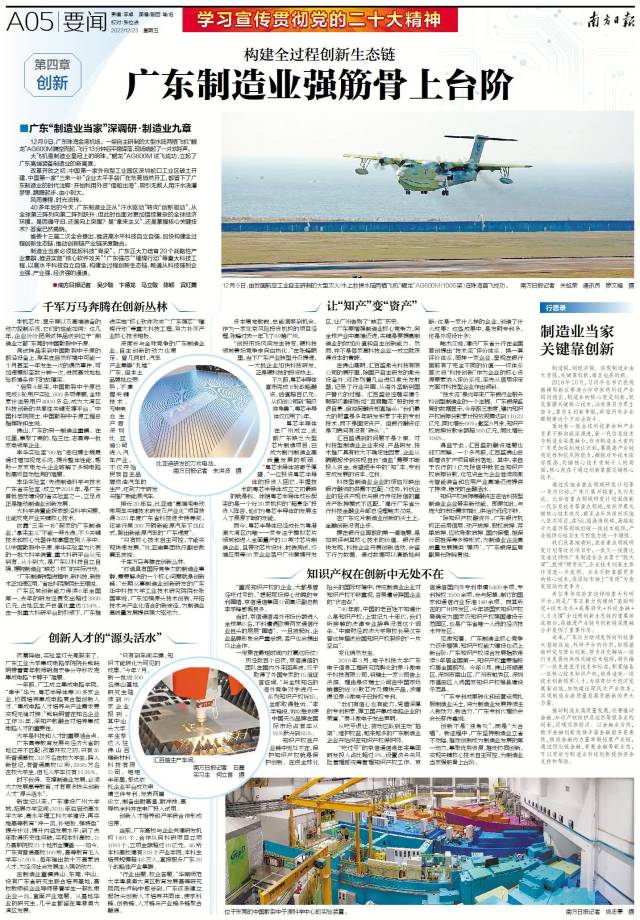 创新不是“独角戏”,而是“大合唱”。新征程中,广东坚持制造业立省不动摇,推动创新成为制造业发展的第一动力,集聚优势资源,推动协同创新,实现关键核心技术自主可控,为制造业当家强筋骨上台阶。