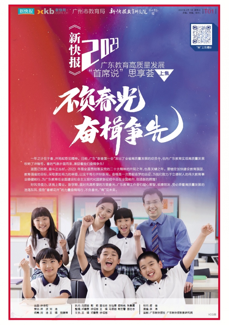 首期与读者见面的是——《不负春光 奋楫争先——2023广东教育高质量发展“首席说”思享荟》全媒体特刊。让我们在春意盎然、鲜花怒放的开学季里,一同聆听广东各大高校、中小学学校掌门人的殷殷寄语,带着澎湃的激情,即刻启程!