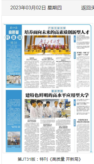 “以高质量党建引领学校高质量发展,广工在高水平创新型大学建设的征程上交出了自己的答卷。”广工党委书记胡钦太说,接下来,学校将继续围绕“建设特色鲜明、国内前列、世界知名的高水平创新型大学”的奋斗目标,推进学校教育事业高质量跨越式发展,持续探索培养面向未来的高素质创新型人才的“广工模式”,为高质量发展提供高质量的人才支撑和科技支撑。