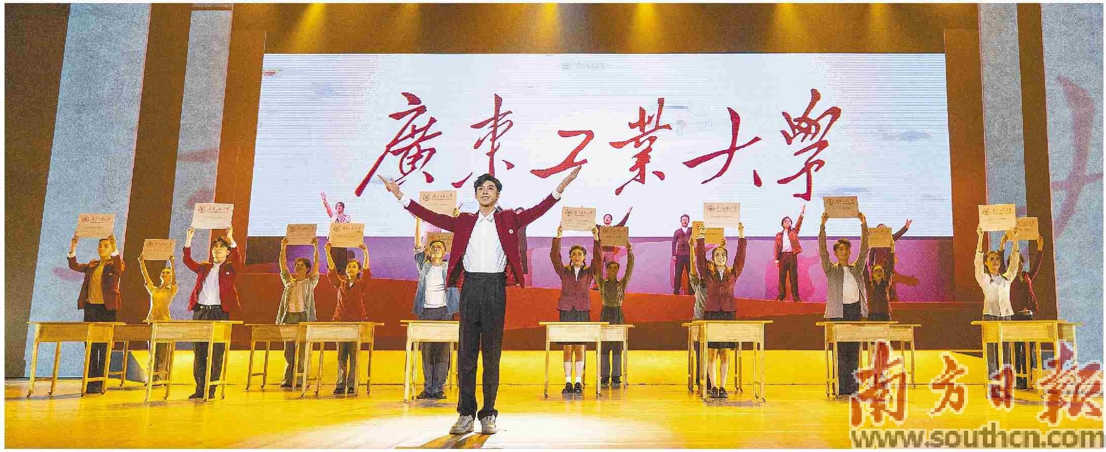2022年底,广工师生自编自导自演大型情景史诗剧《青春印丰碑》,将东深供水工程中的广工故事搬上舞台,展现了一堂情感与价值相融合的美育思政大课。