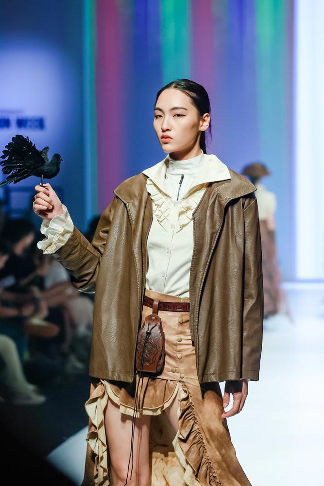 广工表演专业大四学生田函诺在本次展演中担任学生总导演,通过这项工作,她对秀场编排与内涵进行了更深入的探索,也从舞台编导到秀场氛围进行了大胆的尝试,以青春大学生的视角,创新定义和诠释时装周的新样貌,让时尚与艺术不再只高高在上,而是贴近生活,来源于生活。“这不仅是对自己四年来学习表演专业和辅修工商管理专业知识的融汇运用,用丰富的理论知识和实际经验,顺利地解决遇到的各个方面的问题;也让我能有机会展示专长,为接下来自己继续攻读广工设计学设计管理方向研究生做一次承前启后的实验和探索。”