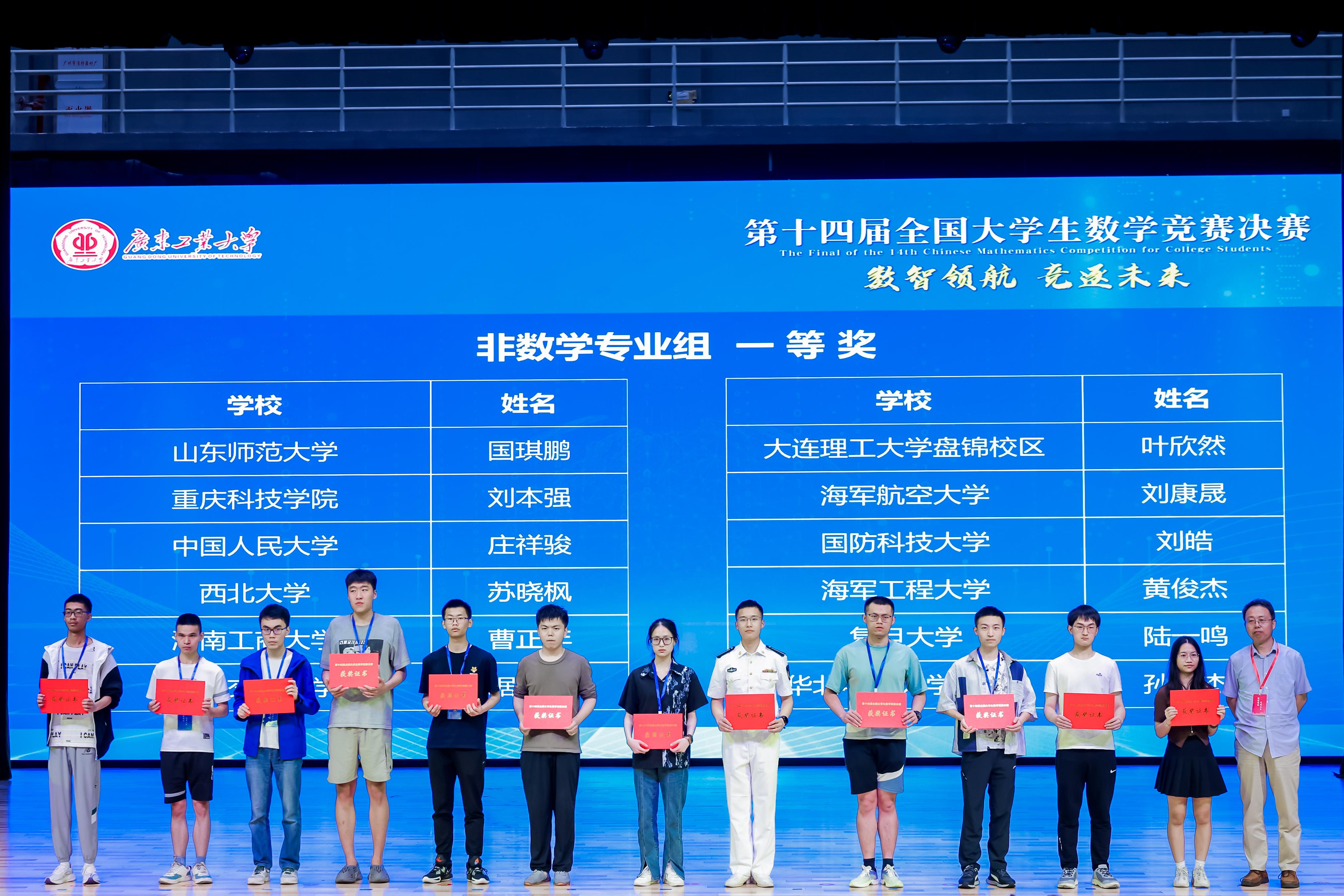 颁奖典礼上,全国大学生数学竞赛工作组组长佘志坤教授宣读了《第十四届全国大学生数学竞赛决赛获奖名单》和《第十四届全国大学生数学竞赛优秀组织获奖名单》。
