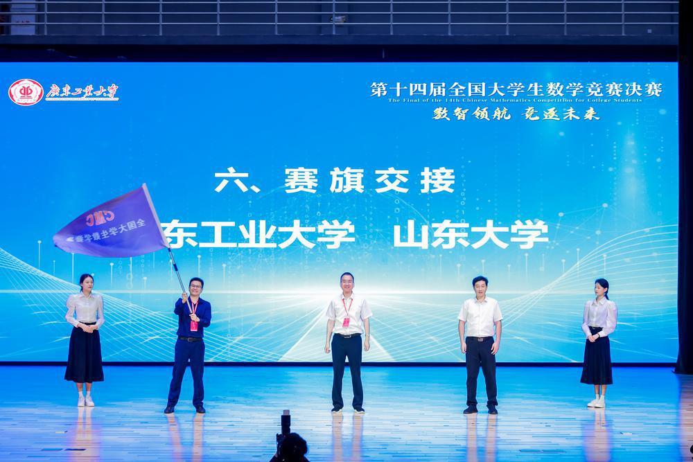 在全体参会者的共同见证下,山东大学数学学院党委书记王光辉教授从华体会·官方版网站登录入口数学与统计学院院长陈智奇教授手中接过赛旗,承诺将竭力办好下一届决赛,传扬全国大学生数学竞赛“数智领航 逐梦未来”的精神。
