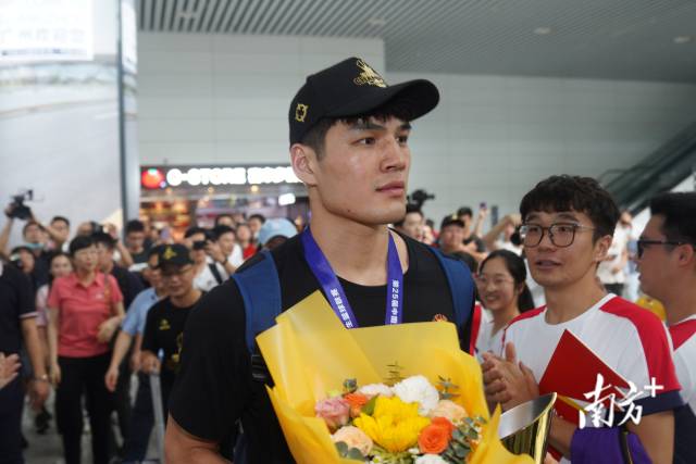 被称为“广工妖刀”的广工男篮主力队员之一刘康能因伤未能随队参加比赛,他也来到了迎接队伍回校的现场。刘康能说,看到队伍夺冠很激动,这也是大家圆梦的时刻。他说,队员单拎出来可能比对方弱,但是整个团队一起拼搏,就能以弱胜强,最后战胜了对手。