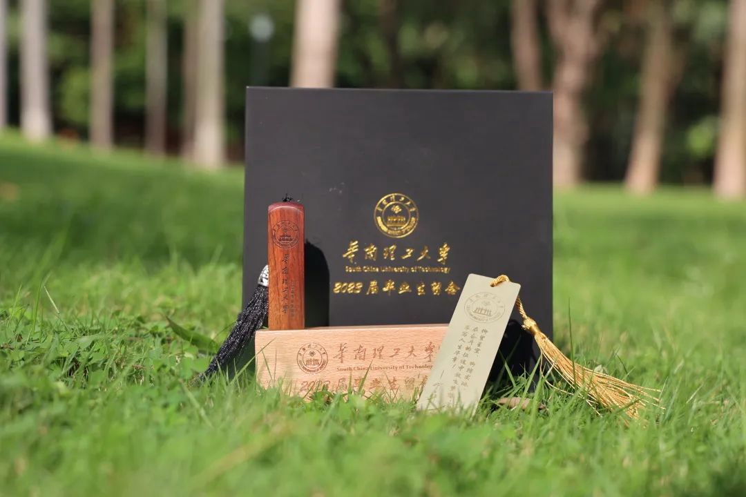 记者留意到,不同高校的毕业礼盒也各出心裁,将美好的祝福化为具象的纪念品。华工为毕业生送上了红木实木材质的印章,其底部雕刻着学生姓名,外部镌刻着校徽、校名等,搭配红色印泥,诉说着“红泥拓印忆往昔,径写新篇就印章”的祝愿,希望学子们在追逐梦想时,莫忘来时路。