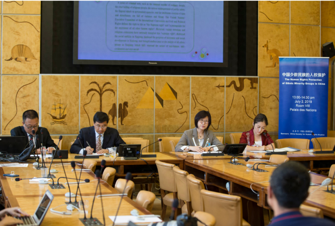 2019年7月2日,中国人权研究会在瑞士日内瓦举办“中国少数民族的人权保护”主题研讨会。(新华社供图)