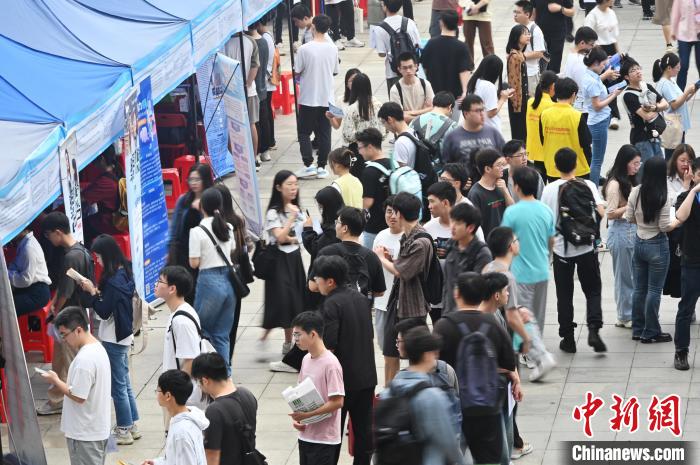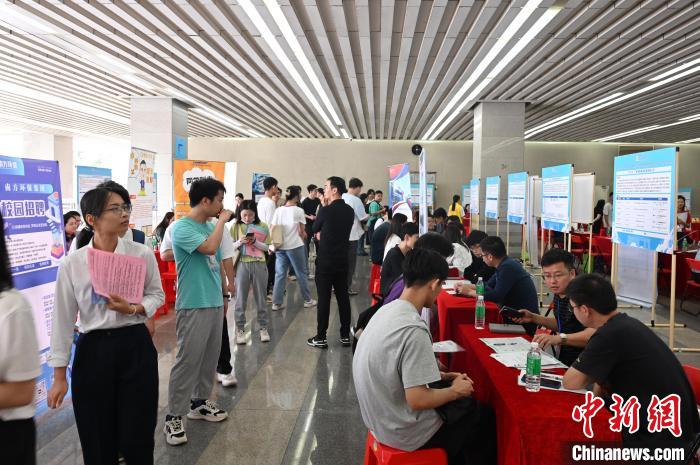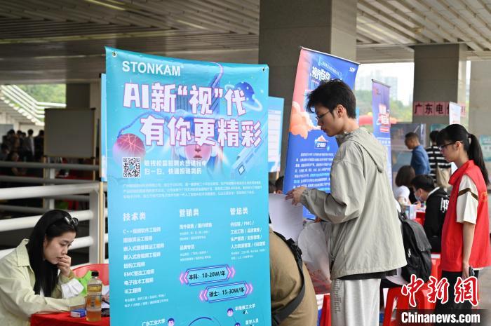 3月30日,广东广州,求职者在华体会·官方版网站登录入口大学城校区图书馆广场面试。 陈楚红 摄