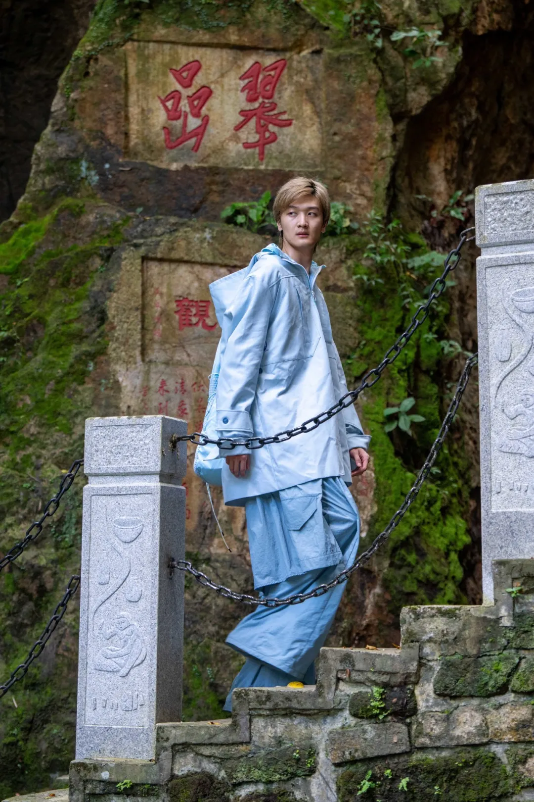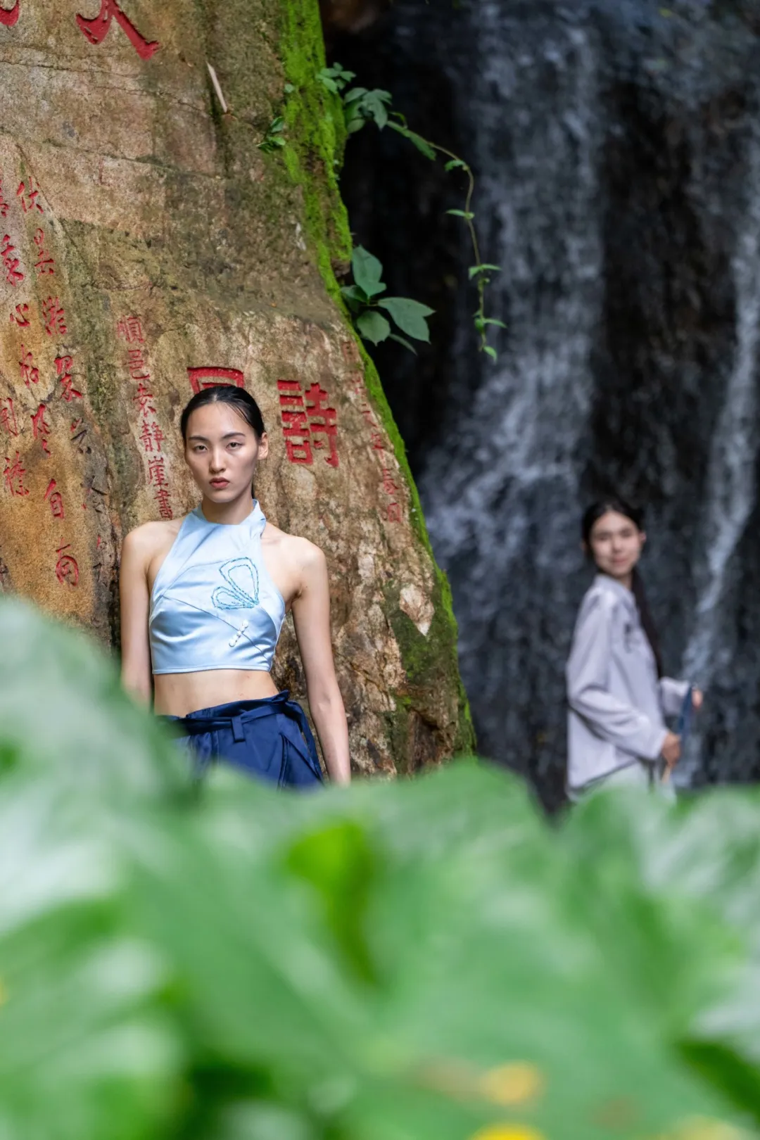 在西樵山得天独厚的自然环境下,配合天然岩石、溪流瀑布、初夏微风、摩崖石刻......以自然山水为底色、以先锋服饰为载体,诠释山野时尚艺术新风尚。