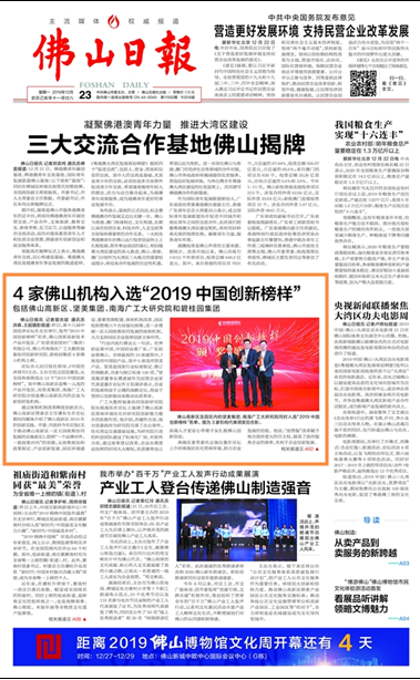 佛山日报:4家佛山机构入选“2019中国创新榜样”