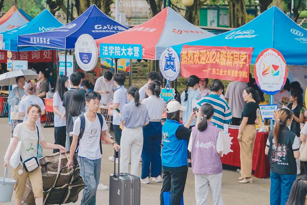 揭阳校区设计了新生签名墙和打卡点,还准备了专属扇子、明信片、日历、鼠标垫等小礼物;材料与能源学院精心准备了新生慰问礼包,为当天生日的同学定制蛋糕,赠予新生特制笔筒;计算机学院准备了新生专属礼包袋以及计算机专属卡套等,用所有新生名字设计了“我爱计算机”迎新展板;自动化学院、轻工化工学院、法学院、信息工程学院、物理与光电工程学院等为新生赠送定制钥匙扣、帆布袋、明信片、特色地标卡片、广工生活指南等;国际教育学院编写个性化双语入学祝福;集成电路学院举办了新生趣味定向越野活动;土木与交通工程学院以“增加专业归属感”为主线为新生配备“引路人”校友班主任等等,点滴心意暖人心。