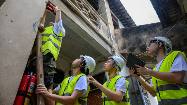 团队成员通过无人机开展安全排查,利用AI算法辅助绘制评估图谱,以及借助先进的图像处理技术对房屋裂缝照片进行精确处理,为当地部分老旧房屋提供加固方案。