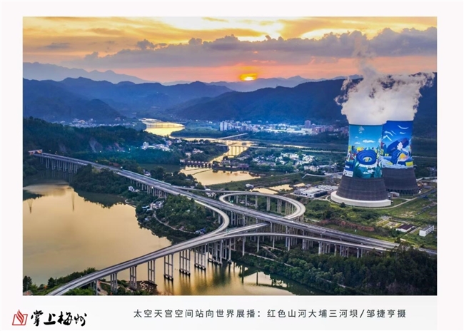 在2021年10月,叶凤华教授曾领衔华体会·官方版网站登录入口团队与广美教授叶正华教授合作完成了广东梅州大埔县三河坝纪念馆巨型冷却塔壁画《红色山河·绿色未来》的创作。该作品以6万平方米的巨幅面积,成功刷新了由俄罗斯艺术家保持的原世界纪录。更为瞩目的是,2022年8月1日,在神舟十四号航天员乘组从天宫空间站发回的“八一”建军节特别视频中,航天员刘洋手持这幅壁画的高清图像向全球展示,并深情寄语:“革命老区旧貌换新颜,向老区人民致敬!”这一历史性瞬间,使这幅承载着红色记忆与绿色愿景的壁画超越了物理空间的限制,跃上宇宙舞台,成为中国公共艺术与航天科技跨界融合的典范,也让世界看到了中国故事的磅礴与绚烂。