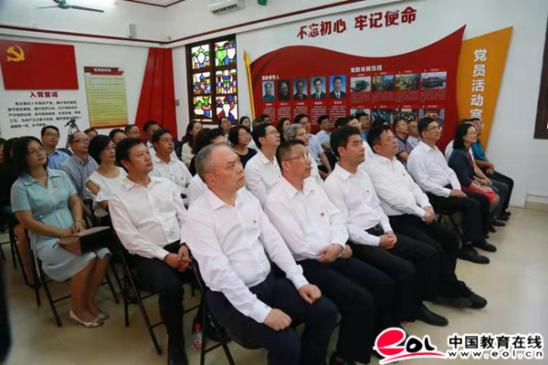 到场的全体党员站立在鲜艳的党旗前,庄严地举起右手,在陈新的带领下重温入党誓词,“我志愿加入中国共产党……”声音激昂洪亮,重温入党初心,重温心潮澎湃的光荣时刻。随后,大家集中观看了习近平总书记到江西省于都县瞻仰、参观中央红军长征出发纪念碑和纪念馆的视频。