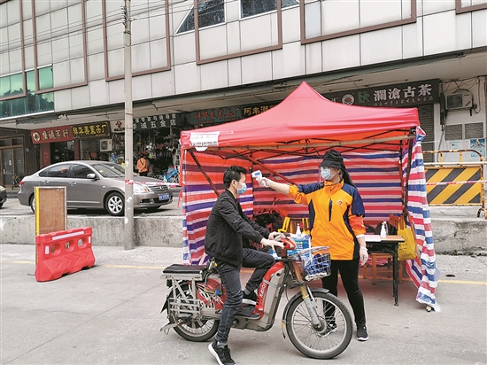 黄敏华在防疫点执勤 |