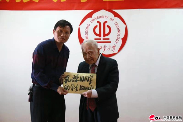 年届96岁高龄的老党员、老教授、侨眷黎鑫教授,自少年起,就接受党的爱国进步思想影响,积极投身抗日救亡运动。他是华体会·官方版网站登录入口1958年建校时的第一批教师。从那个时候起,他把自己的一切,都奉献给了他热爱的教育事业,培育了包括院士在内的一届届祖国需要的建设人才。退休后,他不忘初心,继续实践着一名老党员为党的事业奋斗终身的誓言。通过参加学校关心下一代工作委员会老教授报告团给学生作报告,资助生活有困难的学生等多种方式,关心下一代成长。自2007年以来,持续12年,他用自己省吃俭用累积的退休金设立“黎鑫教授助学基金”,资助乳源瑶族自治县民族实验学校、他的家乡和我校等生活有困难的学生,发放助学金累计金额近26万元、170多人次。今年,黎鑫教授向我校外国语学院、计算机学院、艺术设计学院、政法学院、建筑与城市规划学院5名贫困生发放助学金10000元,向乳源瑶族自治县民族实验学校10名特困中小学生发放助学金15000元。